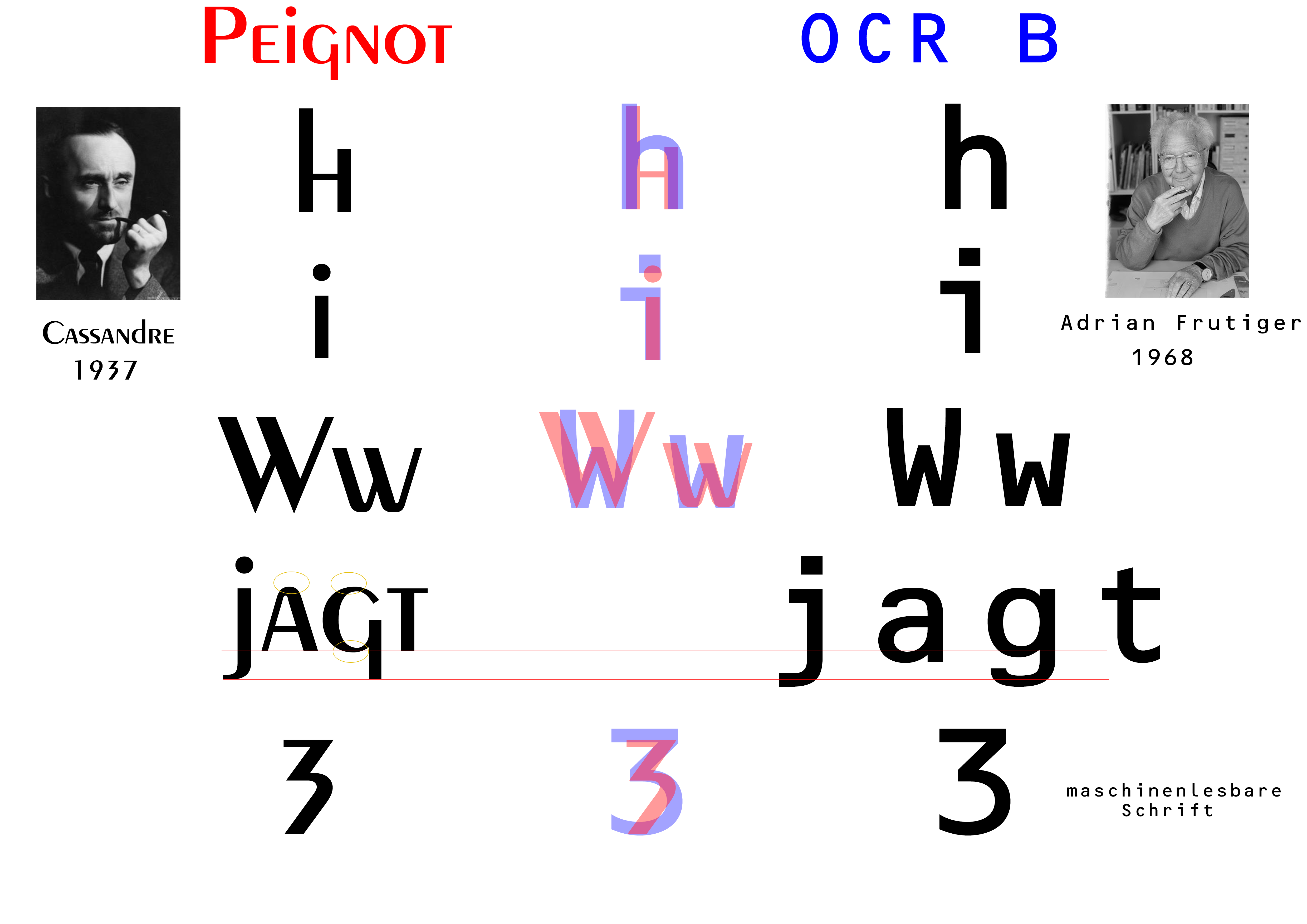 wir zugeteilt bekamen verglichen. Meiner war OCR B und er hatte den Font Peignot genauer