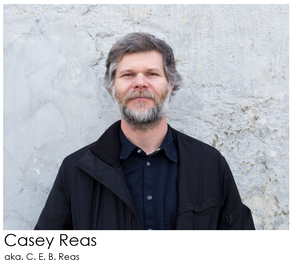 Casey Edwin Barker Reas (geb. 1972), oder C. E. B. Reas, ist ein amerikanischer Künstler, dessen konzeptuelle, prozedurale und minimale Kunstwerke Ideen durch die zeitgenössische Linse von Software erforschen. Im Jahr 2001 schuf Reas zusammen mit dem MIT-Doktoranden Ben Fry die Programmiersprache Processing. Die Verarbeitung wird weltweit von Tausenden von Künstlern und Designern sowie von Pädagogen eingesetzt, die die Grundlagen des Programmierens an Kunst- und Designschulen vermitteln.