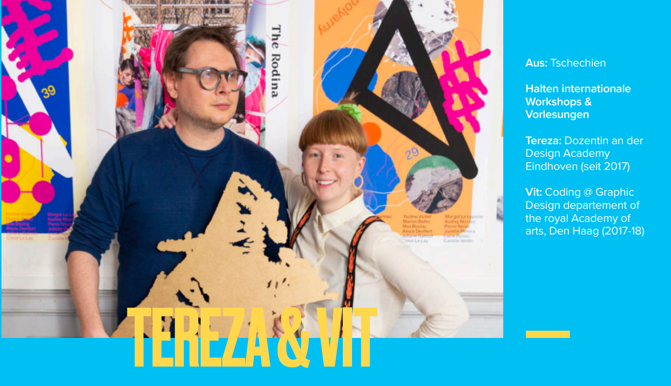 The Rodina sind ein Designstudio bestehend aus Tereza und Vit. Dieses Designsutio spezialisierte sich auf Video, User experience, Installationen und Visual Identities.