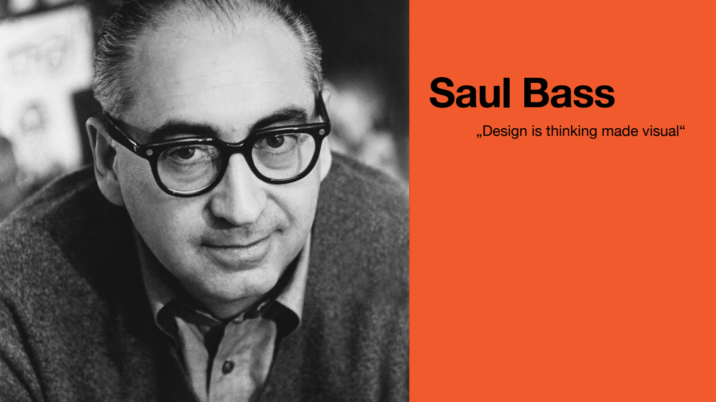 Saul Bass lebte von 1920 bis 1996 in Amerika und spezialisierte sich nach dem Designstudium in New York auf die Typographie. Speziell an seinen Arbeiten war, dass er Bild und Text vermischte, dadurch eine neue Animationstechnik schuf wodurch er die Filmszene revolutionierte, sodass sein Stil noch hete erkennbar ist. Das bedeutendste Werk von Saul Bass ist «Why Man Creates», wofür er 1969 auch einen Oscar erhielt. Des Weiteren betrieb Saul Bass auch sein eigenes Studio und gestaltete Filmplakate, Filmvorspänne (unter anderem für Alfred Hitchcock), Logos (z. B. das Kleenex-Logo) und so weiter auch als Freelancer für Warner Bros.