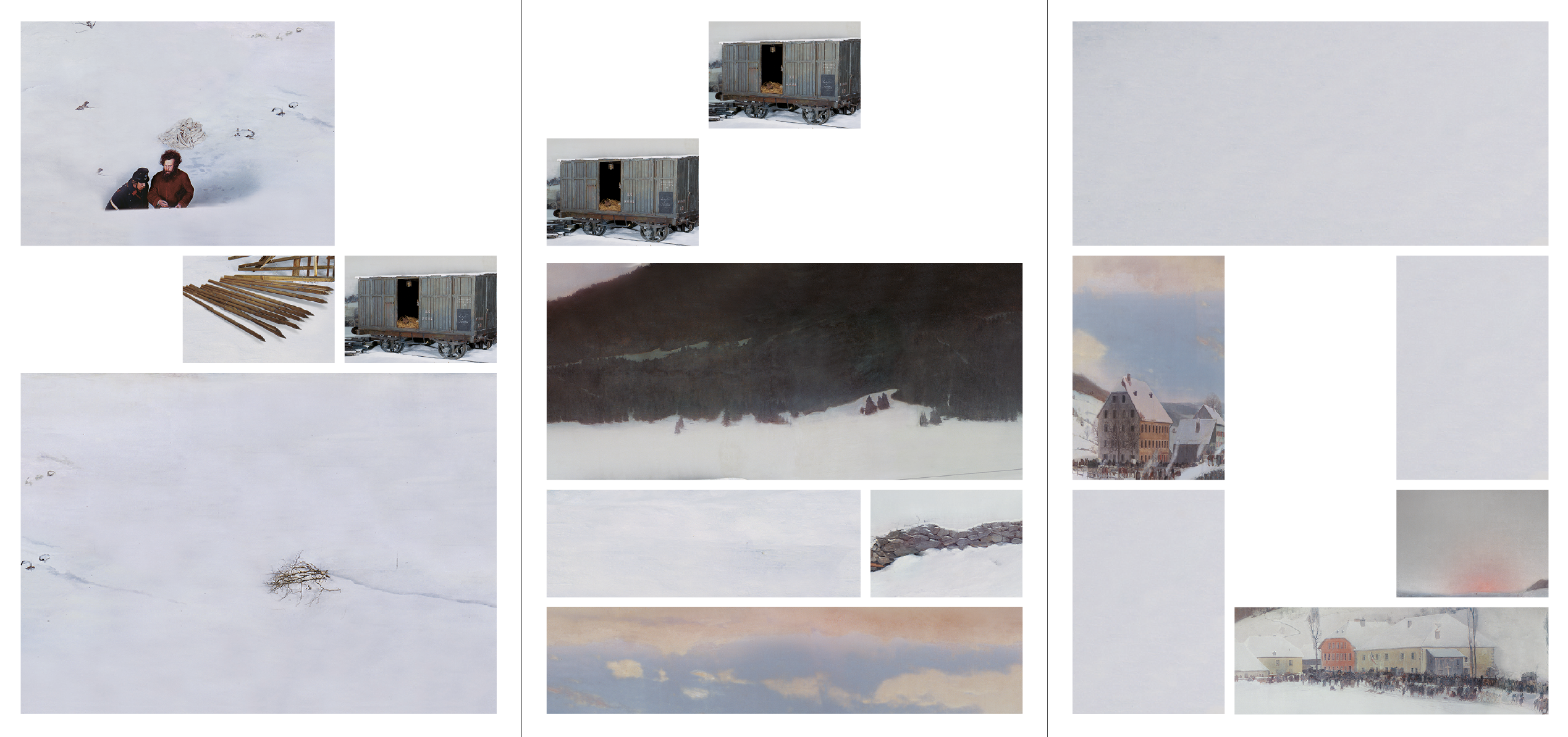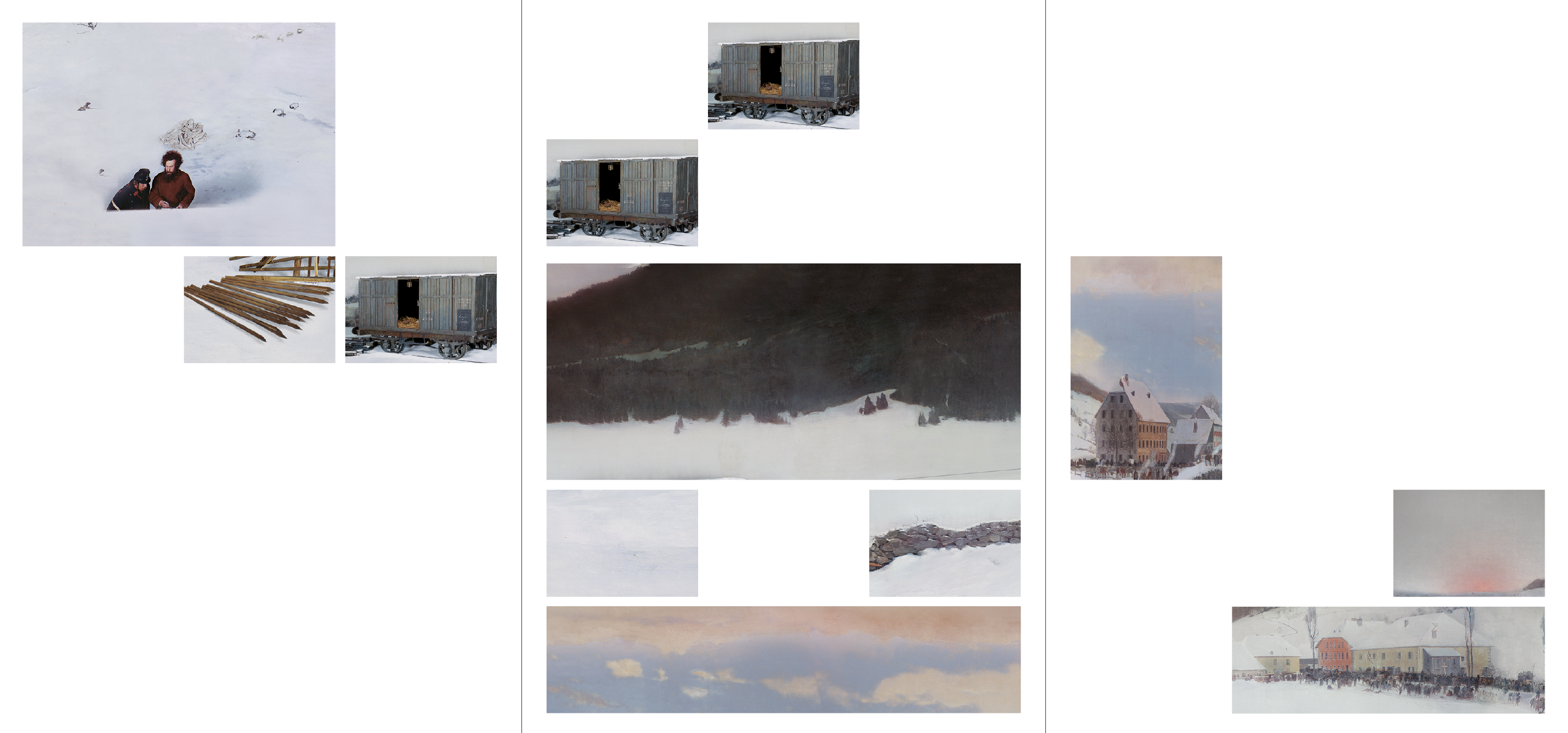 Diese Aufgabe war eine ziemliche herausforderung für mich. Es war schwierig zwei Teile vom Bild neu zu Verbinden, da ich es immer versucht habe logisch zu machen, so dass es einen Sinn dahinter hat. Dann hatte ich mir erlaubt etwas etwas mehr Fantasie in Bild zu bringen, zum Beispiel mit den Wägen die den Berg hoch fahren. Am Schluss war die Idee noch, die Fantasie leicht einzuschränken mit den weissen Flächen um zu signalisieren, dort ist nichts. Ich dachte dadurch konzentriert man sich auf das Wesentliche. Ich bin mir aber bis jetzt nicht sicher ob die weissen Flächen das Bild besser machen oder nicht.